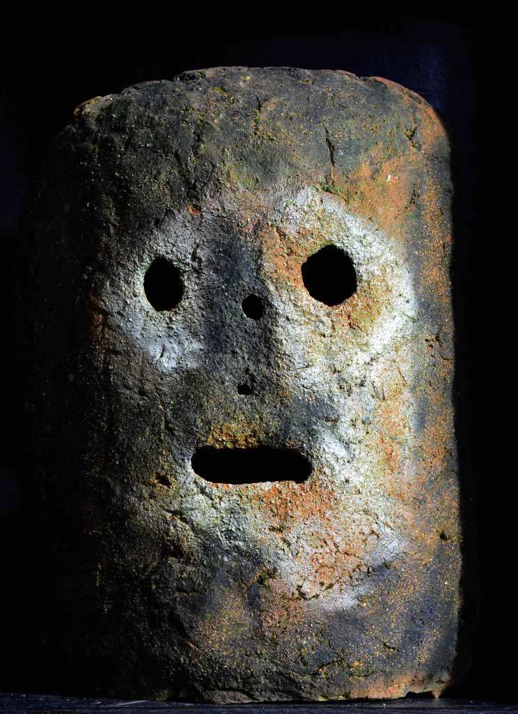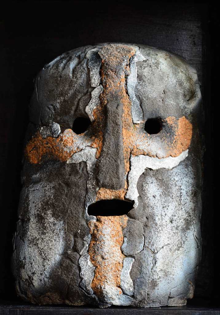 Masque terre émaillée sur trame nickel-chrome : 50/65 cm.